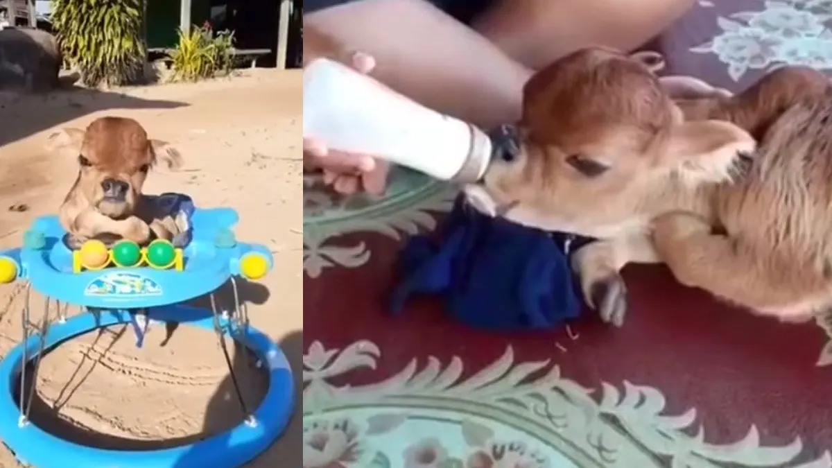 น้องมารวย ลูกวัวพิการสุดน่ารัก นั่งรถเข็น กินนม ราวกับมนุษย์