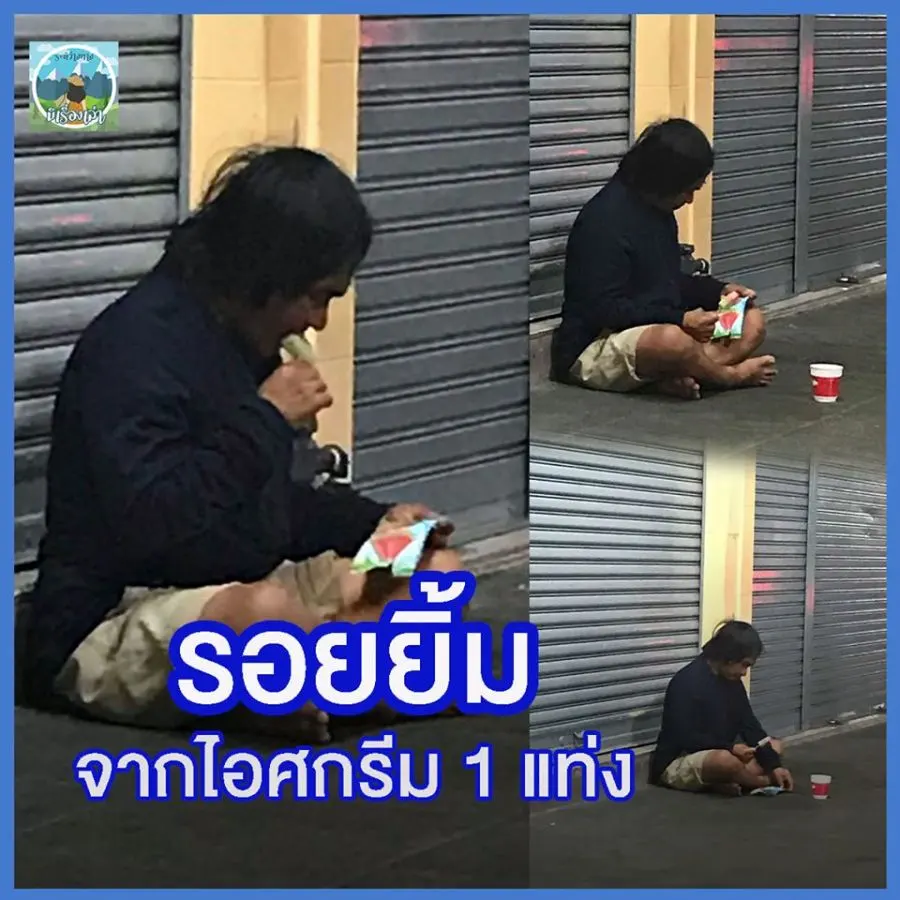 เรื่องราวดีต่อใจที่ทางเพจเฟซบุ๊ก ระหว่างทางมีเรื่องเล่า ได้โพสต์เล่าเหตุการณ์หลังแอดมินเพจได้บังเอิญไปเจอภาพความน่ารัก คุณลุงขายไอศกรีมเดินปรี่เข้าไปหาชายเร่ร่อน จากนั้นหยิบไอศกรีม 1 แท่งยื่นให้เขาไป ชายเร่ร่อนยิ้มรับและขอบคุณคุณลุงยกใหญ่พร้อมยกมือไหว้