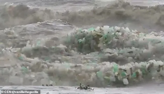 ภาพที่น่าตกตะลึงซึ่งแสดงถึงคลื่นพลาสติกกำลังลอยเกลื่อนชายหาดในแอฟริกาใต้
