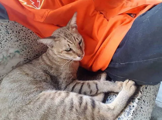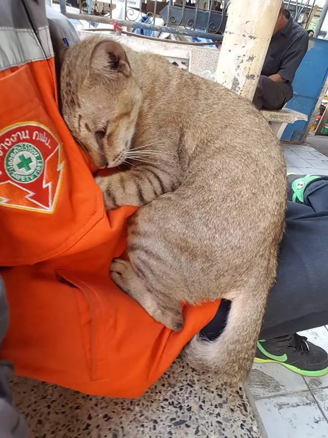 แมวเจ้าถิ่นอ้อนหนักมาก ปีนขึ้นนั่งตักนอนซบอก ชาวเนตเชียร์หิ้วกลับบ้านเลย