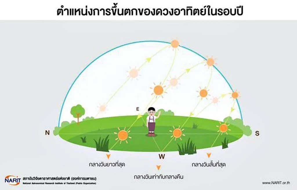 ในรอบ 1 ปี เกิดปรากฏการณ์สำคัญที่เกี่ยวข้องกับการขึ้น-ตกของดวงอาทิตย์ ดังนี้