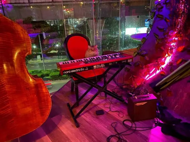 ดนตรีสดแจ๊สก็มีบรรเลงให้ฟังทุกคืนวันเสาร์ ส่วนในภาพคือน้องโอดินนักดนตรีประจำร้าน