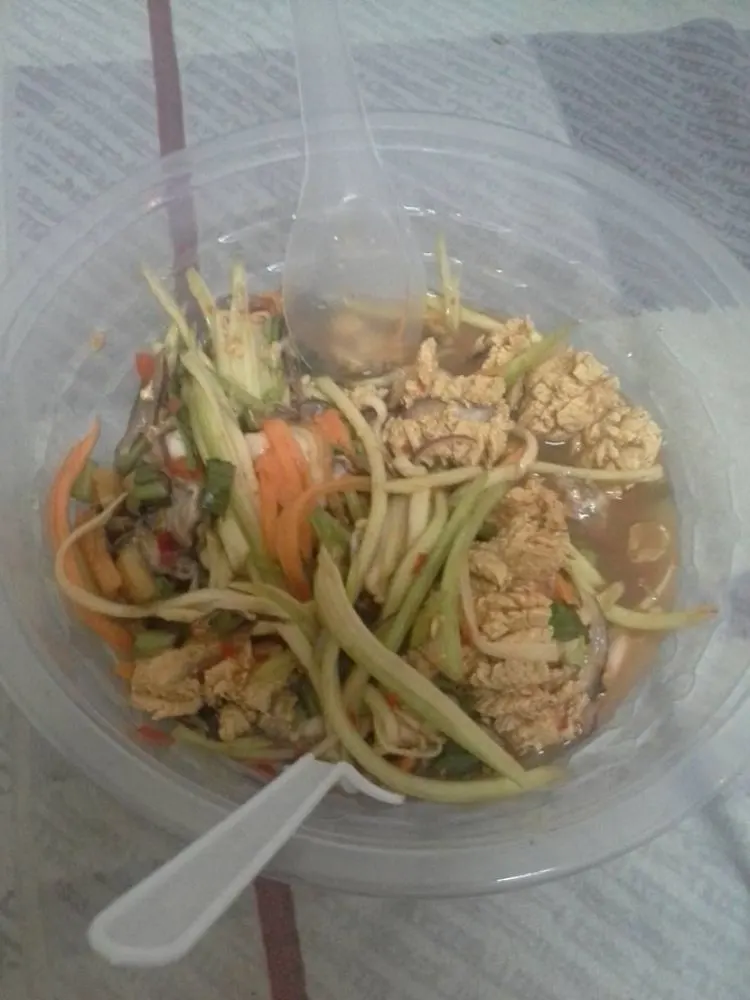 ใครไปเที่ยวงานวัดฉลองมาแล้วบ้างค่ะ เมื่อคืนเราไปเที่ยวมา แล้วไปสั่งยำร้านนึงในงานวัดฉลอง เป็นยำไข่ปลา ปริมาณเท่าแมวดม5555 มะม่วงลูกเท่าไข่ไก่ใส่มาหน่อยนึง ร้านนี้ไม่มีราคาบอกเลยค่ะ คือสั่งไปแล้ว ในใจก้อคิดนะค่ะ ว่าน่าจะแพง แต่เอาน๊าา ยำ1ถุงไม่น่าเกิน150แบบแพงสุดๆแล้ว พอแม่ค้าบอกราคา 220