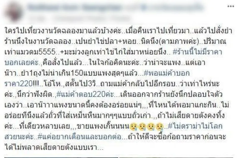 สาวไปเที่ยวงานวัด สั่งยำมะม่วงโดนโขกราคาสุดแพง 220 บาท