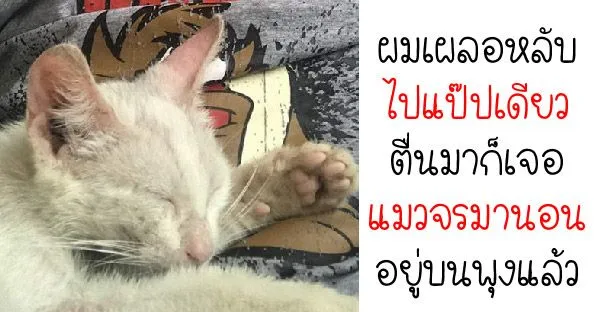 หนุ่มเผลอหลับวูบเดียว ตื่นมาอีกทีเจอแมวจรมานอนบนพุง จึงกลายเป็นทาสแมวแบบไม่รู้ตัว