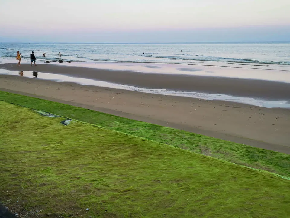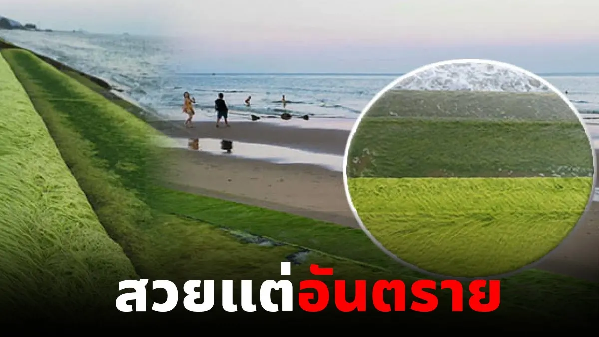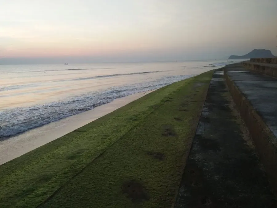 เปิดภาพชายหาดปากน้ำปราณบุรี เหมือนมีใครมาปูพรมเขียว