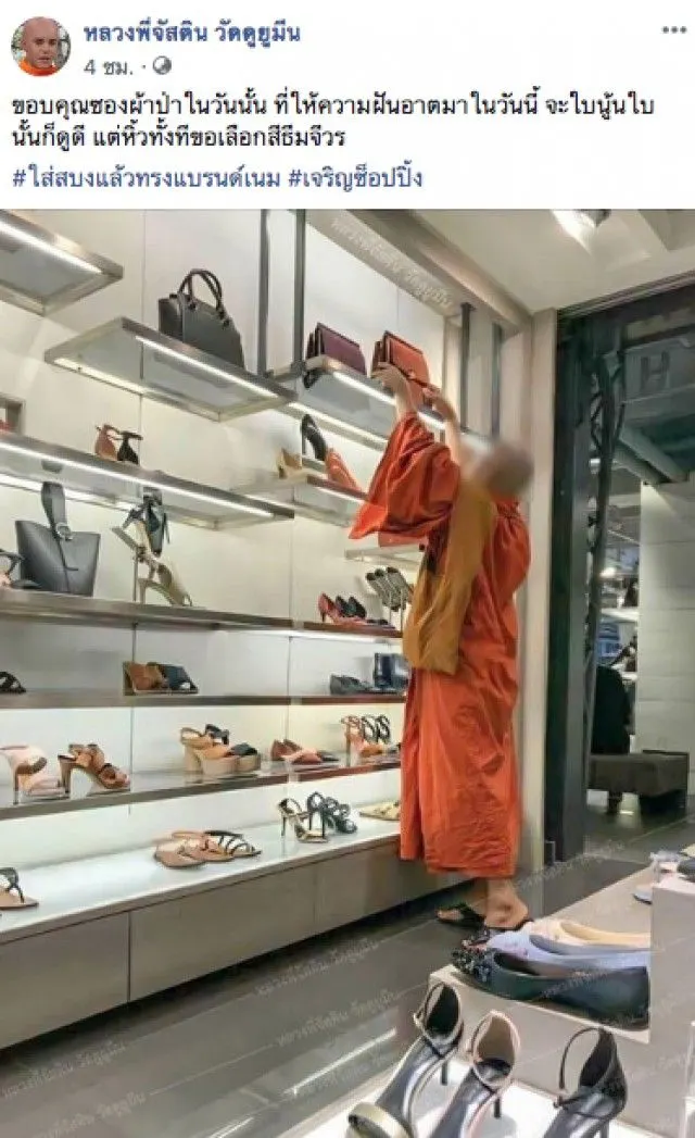 กลายเป็นภาพฮือฮาในโซเชียลอยู่ไม่น้อย เมื่อเพจ หลวงพี่จัสติน วัดดูยูมีน ได้โพสต์ภาพ พระภิกษุรูปหนึ่งอยู่ภายในห้าง และกำลังเลือกดูกระเป๋าแบรนด์เนมยี่ห้อหนึ่ง ภายในร้านแห่งหนึ่ง จนเมื่อภาพนี้เผยแพร่ออกไป ต่างทำให้หลายคนเข้ามาวิพากษ์วิจารณ์ถึงการกระทำดังกล่าวของทางพระภิกษุรูปนี้ ถึงความไม่เหมาะสม