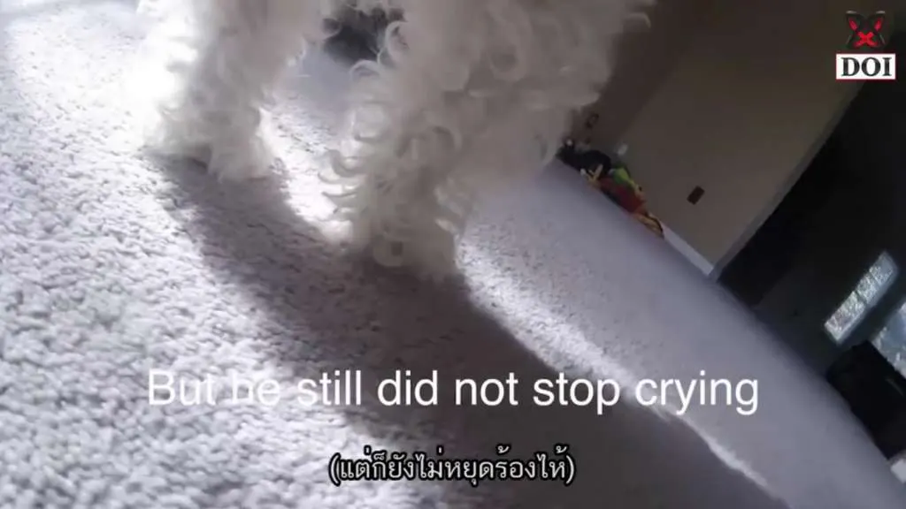 ภายในคลิปจะเห็นจะเห็นสุนัขสีขาว พันธุ์พุดเดิ้ล ชื่อ ควินซี่ ที่ถูกเจ้านายเอากล้องติดไว้ที่ตัว ตอนเขาออกไปข้างนอก ควินซี่ได้แต่เห่าและชะเง้อมอง ควินซี่เดินไปที่บันไดมันร้องไห้ไม่หยุดเป็นชั่วโมง มันไม่ขยับไปไหนเลย เวลาผ่านไปมันก็ยังไม่หยุดร้องไห้ พอเจ้าของกลับมาเปิดกล้องดู คงไม่กล้าทิ้งควินซี่ไว้ตัวเดียวเพียงลำพังอีกแล้ว
