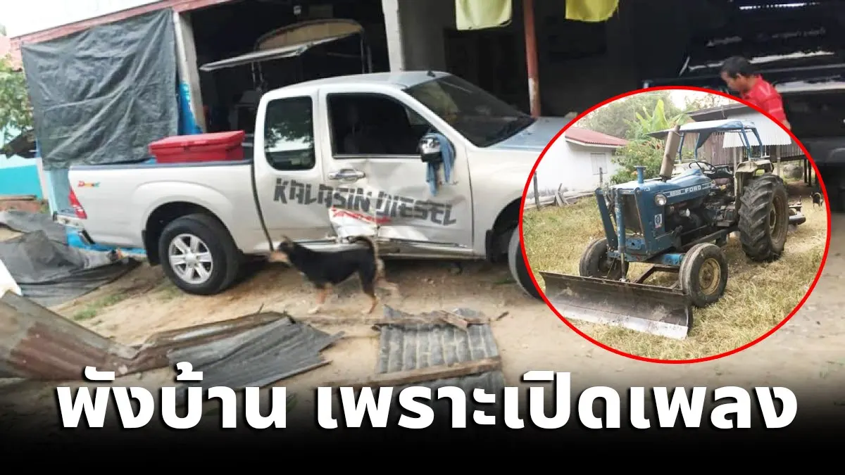 เพื่อนบ้านทนไม่ไหว ขับรถไถชนบ้านตรงข้าม เพราะเปิดเพลงเสียงดัง