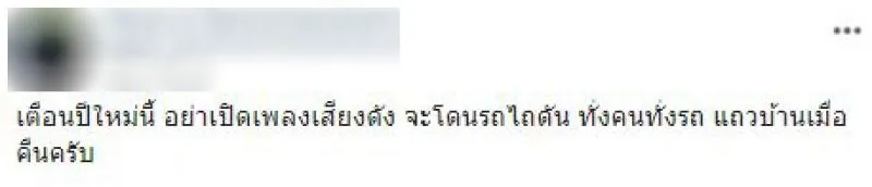 ล่าสุดได้มีผู้ใช้เฟซบุ๊กรายหนึ่งได้โพสต์ภาพและข้อความของเหตุการณ์ในจังหวัดเพชรบรูณ์ที่บ้านหลังหนึ่งเปิดเพลงในรถยนต์เสียงดังเพื่อสังสรรค์ในช่วงเทศกาลปี่ใหม่ แต่เพื่อนบ้านไม่พอใจจึงได้ขับรถไถเข้าไปชนจนได้รับความเสียหาย มีข้อความระบุว่า เตือนปีใหม่นี้ อย่าเปิดเพลงเสียงดัง จะโดนรถไถดัน ทั้งคน ทั้งรถ แถวบ้านเมื่อคืนครับ