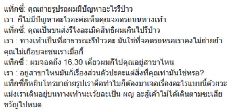 แท๊กซี่กร่างหาเรื่องผู้หญิง หลังโดยถ่ายรูปขึ้นไปจอดบนฟุตบาธ