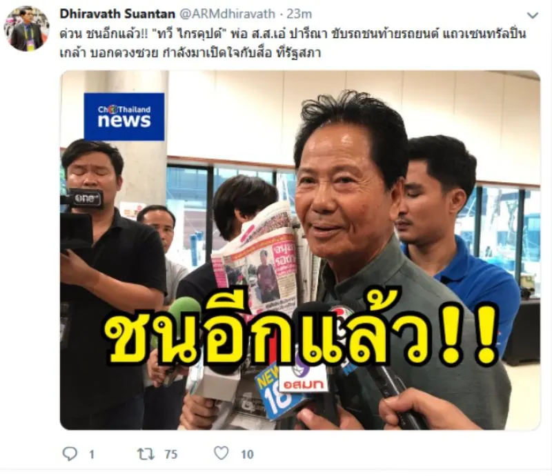 ทวี ไกรคุปต์ พ่อ สส เอ๋ ปารีณา ขับชนอีกแล้ว ลั่น ดวงซวยจริงๆ