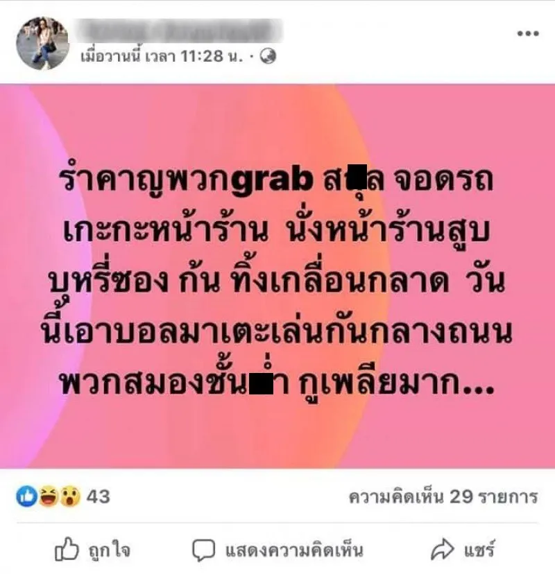 สาวโพสต์ว่าพนักงาน Grab เกะกะหน้าร้าน