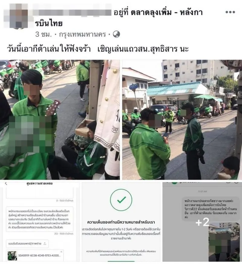 โดยสาวคนดังกล่าวได้เผยถึงเหล่าบรรดาพนักงานเเกร็บบริเวณตลาดลุงเพิ่ม หลังการบินไทย วันนี้เอากีต้าเล่นให้ฟังจร้า เชิญเล่นแถวสน สุทธิสาร นะ ตามมาด้วยรำคาญพวกเเกร็บ วันนี้เอาบอลมาเตะเล่นกันกลางถนน พวกชั้นต่ำ GUเพลียมาก