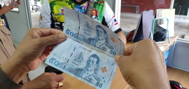พอกลับที่พักตนก็หยิบแบงค์มาดูเนื่องจากตนเป็นคนชอบสะสมธนบัตร ก็พบว่าเป็นธนบัตรใบละ 50 บาท ปลอมเนื่องจากไม่มีลายน้ำ และตนก็ไม่ทราบว่าเป็นร้านใดทอนให้มา ตนจึงมาแจ้งความไว้เป็นหลักฐาน