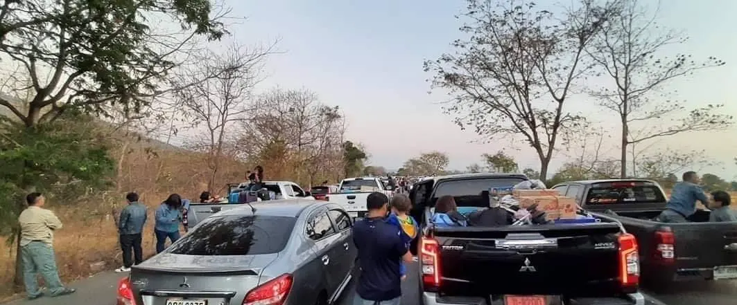ภาพการจราจรที่ช่องตะโก รถติดไม่ขยับจนคนดับเครื่องออกมาเดินเล่น