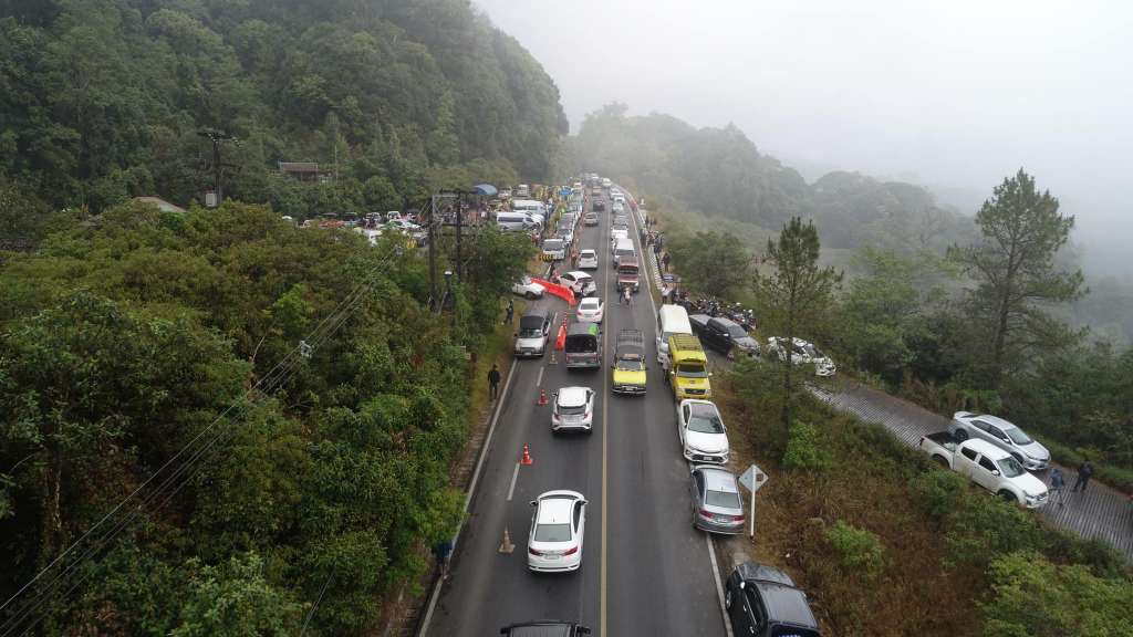 ประชาชนแห่ขึ้นดอยอินทนนท์ สัมผัสอากาศหนาวเย็น ส่งผลให้ ถนนสายจอมทอง – ดอยอินทนนท์ จ.เชียงใหม่ มุ่งสู่ จุดท่องเที่ยว มีรถนักท่องเที่ยวเข้ามาเป็นจำนวนมาก การจราจรติดยาว