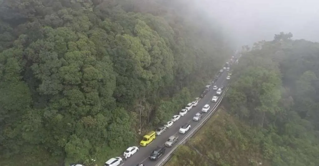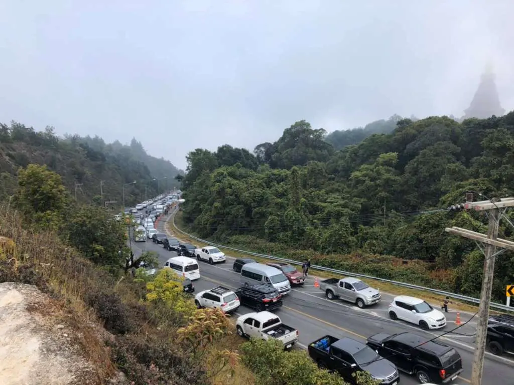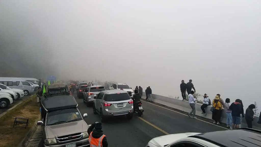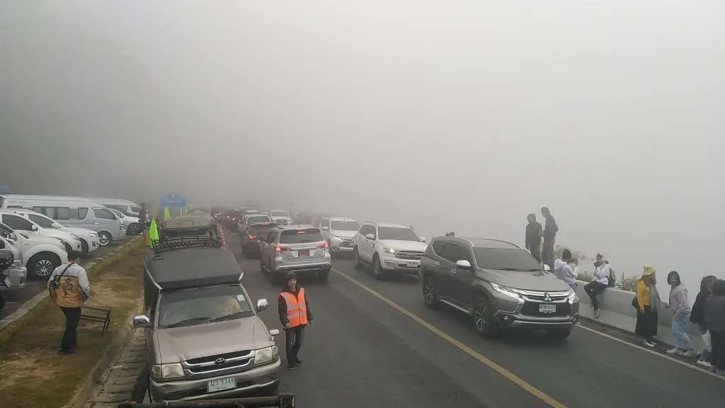 โดยทางอุทยานแห่งชาติดอยอินทนนท์ – Doi Inthanon National Park มีการรายงานสภาพการจราจร เวลา 09.29 น. ถนนสายจอมทอง – ดอยอินทนนท์ กม.41-43 พระมหาธาตุเจดีย์, กิ่วแม่ปาน มีหมอกลงจัด การมองเห็นระยะไม่เกิน 30 เมตร มีรถนักท่องเที่ยวเข้ามาเป็นจำนวนมาก เคลื่อนตัวได้ช้า ช่องจอดรถเหลือน้อย แต่ก็พอหาได้ เพราะมีรถเข้า – ออก ช่วงเช้านี้รถเยอะ แนะนำนักท่องเที่ยวขึ้นมาจุดนี้ช่วงบ่าย ที่รถน้อยกว่า