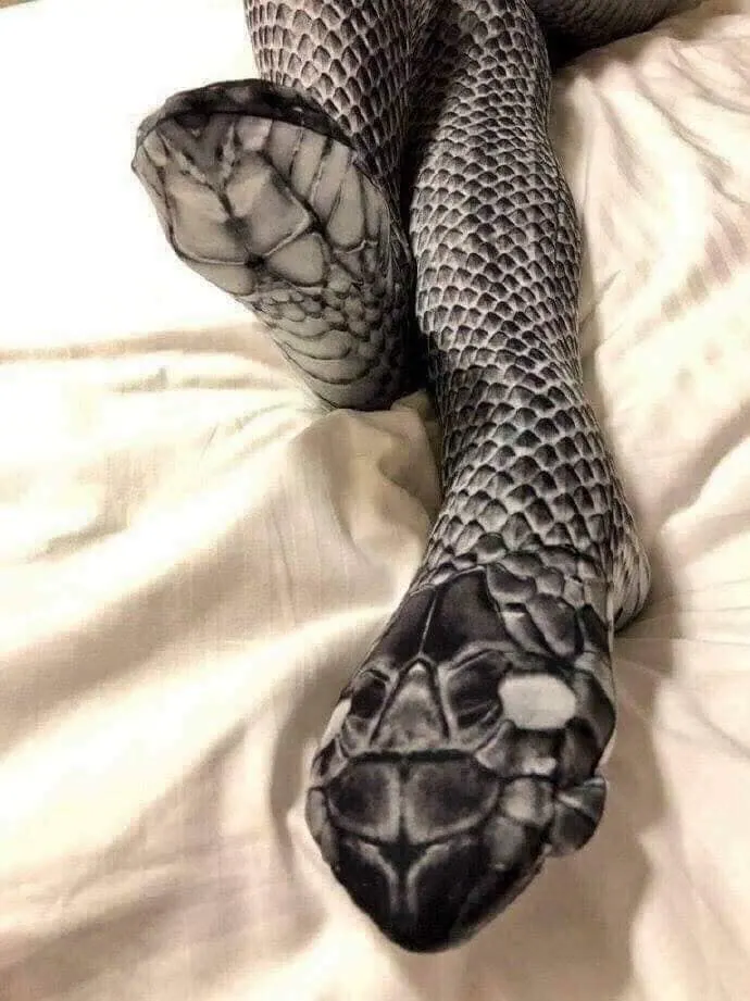 เป็นเรื่องราวสุดฮา และแฝงไปด้วยความน่าสงสาร เมื่อผู้ใช้เฟซบุ๊ก หนึ่ง สิงหา โพสต์ภาพเล่าเหตุการณ์ของหญิงสาวรายหนึ่ง ได้ซื้อถุงน่องลายใหม่มาใส่ มีลักษณะคล้ายงู โดยมีลวดลายเป็นเกล็ด และบริเวณปลายเท้าเป็นรูปศรีษะของงู ซึ่งต้องยอมรับเลยว่าผู้ผลิตทำออกมาได้ค่อนข้างสมจริง