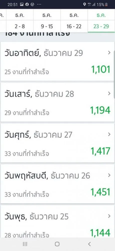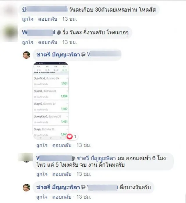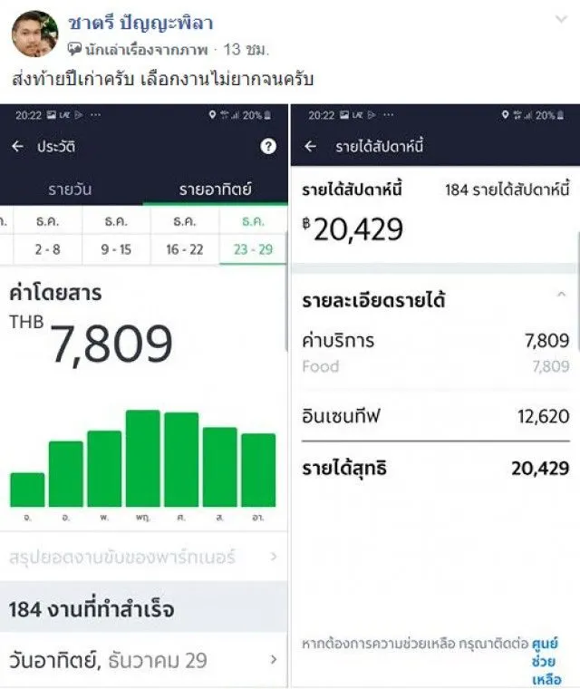 เฟซบุ๊คชื่อ ชาตรี ปัญญะพิลา ได้โพสต์พร้อมระบุข้อความว่า ส่งท้ายปีเก่าครับ ไม่เลือกงานไม่ยากจนครับ พร้อมกับโชว์รายได้จากการขับแกร๊บในสัปดานี้ ที่ได้มากถึง 2 หมื่นบาท