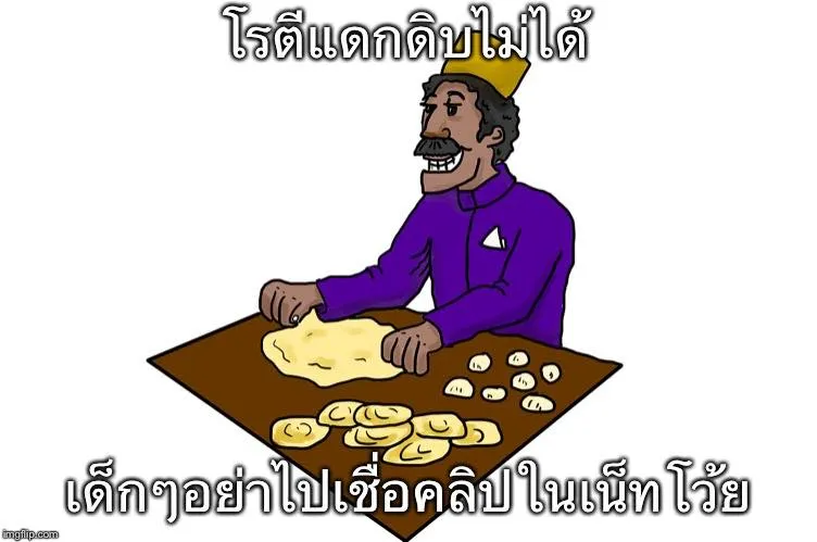 ว่าแต่ไม่มีอะไรจะแดกกันแล้วเรอะ ไปแดกโรตีดิบๆเนี่ย เด็กๆบ้านไหนขี้แตกขี้แตนหนักๆ พ่อแม่ก็รีดถามลูกด้วยว่าไปแดกโรตีดิบกันมารึเปล่า