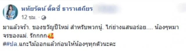 เป็นเรื่องราวน่ารักและน่าชื่นชมเป็นอย่างมากสำหรับหญิงสาวรายหนึ่ง ที่เทศกาลปีใหม่หลายๆคน จะกลับบ้านหาครอบครัว ทำอาหารเลี้ยงฉลองกัน แต่อีกมุมหนึ่งที่ไม่มีคนสนใจคือสุนัขที่ไร้บ้าน ไม่มีคนสนใจ แต่กลับมีนางฟ้าคนหนึ่งนึกถึงพวกมัน เมื่อวันที่ 1 ธันวาคม ผู้ใช้เฟสบุ๊ครายหนึ่งใช้ชื่อว่า หทัยรัตน์ ติ๊ดซี่ ธาราเสถียร ได้โพสต์ข้อความระบุว่า มาแล้วจร้า ของขวัญปีใหม่ สำหรับพวกหนู ไก่แสนอร่อย น้องๆหมาจรของแม่ รัก ปล แกะไม้ออกแล้วก่อนให้น้องๆทุกตัวนะคะ