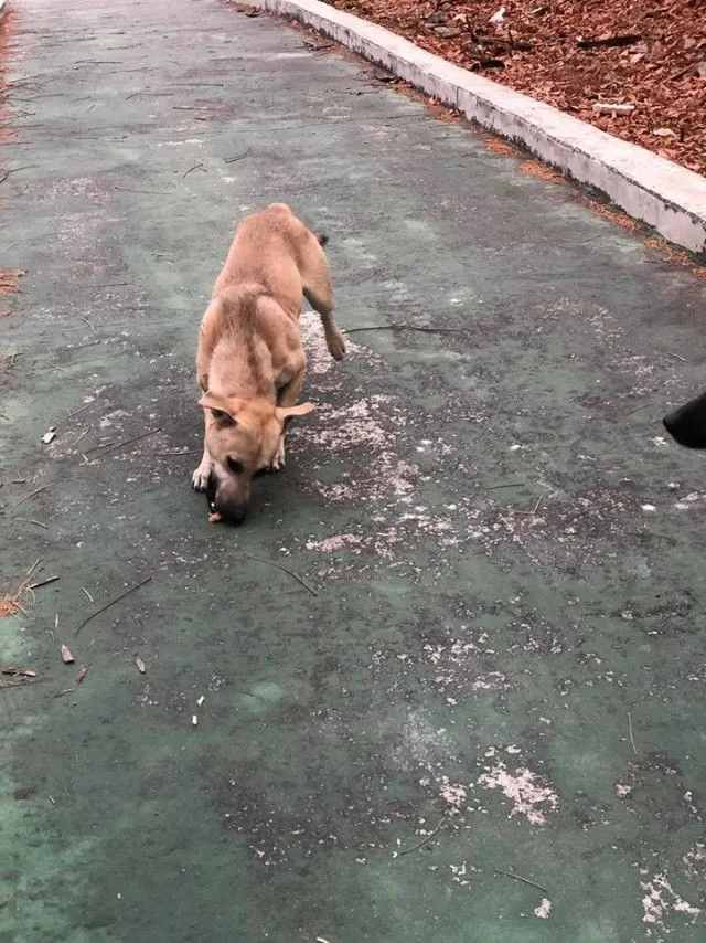สาวนำของขวัญปีใหม่ มาให้สุนัข