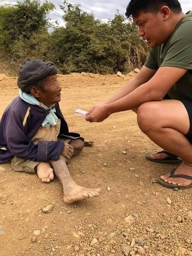 หนุ่มเห็นหญิงสูงอายุ หอบถุงปุ๋ย