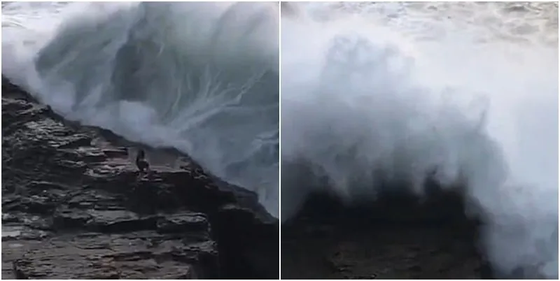 ซึ่งจากคลิปวิดีโอจะเห็นได้ว่าในขณะที่ชายรายหนึ่งยืนอยู่บนโขดหิน ทันใดนั้นก็คลื่นสูงตระหง่านก่อตัวขึ้นข้างหลังเขา จากนั้นคลื่นได้ซัดกระแทกร่างของเขากับก้อนหิน จนกระทั่งทำให้เขาตกลงไปในทะเลที่ปั่นป่วนและลึกหลายเมตร