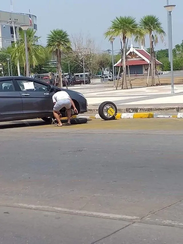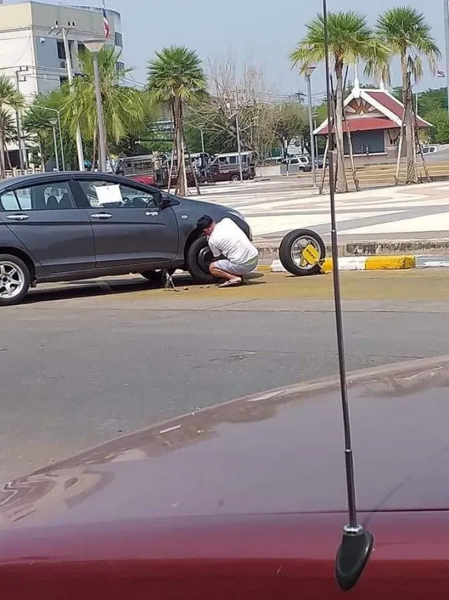 เป็นภาพที่หลายๆคนให้ความสนใจเป็นอย่างมาก สำหรับหนุ่มรายหนึ่งที่โดนตำรวจล็อคล้อ และพยามเอาล้ออะไหร่สับเปลี่ยน สำหรับคนที่เคยโดน ล็อคล้อรถยนต์ จากการ จอดรถผิดกฏจราจร มาเเล้ว อาจจะมองเป็นเรื่องเล็กๆ แต่สำหรับคนที่เพิ่งเคยโดนครั้งแรก บางคนอาจเกิดอาการวิตกจริตทำอะไรไม่ถถูก ไม่รู้จะเริ่มต้นแก้ไขสถานการณ์อย่างไร แต่หนุ่มรายนี้แก้ไขสถาณการณ์โดยการสับเปลี่ยนล้อเพื่อให้รถวิ่งได้ เพื่อที่จะขับไปสน ไปเสียค่าปรับนั่นเอง