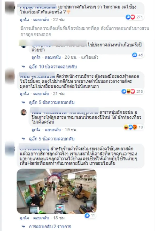 เนื่องจากงานงดใช้ถุงพลาสติกที่ผ่านมา ประชาชนหลายๆท่านคงจะยังปรับตัวไม่ทันทีโครงการนี้ และบางคนก็ว่าและเหวี่ยงวีนพนักงานที่ไม่มีถุงใส่ให้ แต่อย่าลืมนะคะ ว่าพนักงานก็มีความรู้สึกเหมือนกัน แต่ประชาชนทุกคนเตรียมถุงผ้ามาจากบ้าน แค่นี้ก็หมดปัญหาในการงดใช้ถุงแล้วจ้า