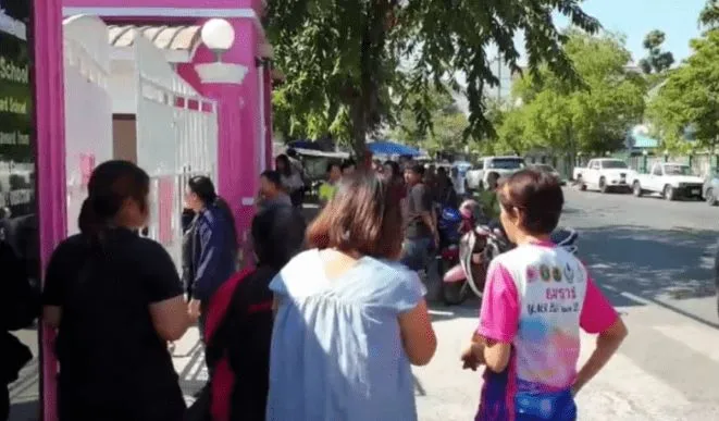 นักเรียนยิงกัน ผู้ปกครองเฝ้ารอฟังข่าวลูกหน้าประตูทางเข้าโรงเรียนสุขานารี เขตเทศบาลนครราชสีมาหลังเกิดเหตุนักเรียน พกปืนมาโรงรียนทำลั่นใส่เพื่อนอาการสาหัส โดยเหตุเกิดที่โรงเรียน สุขานารี ตำบลในเมือง อำเภอเมืองนครราชสีมา นครราชสีมา