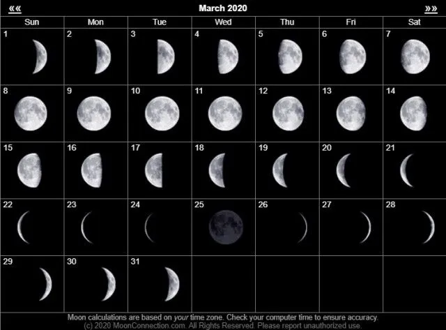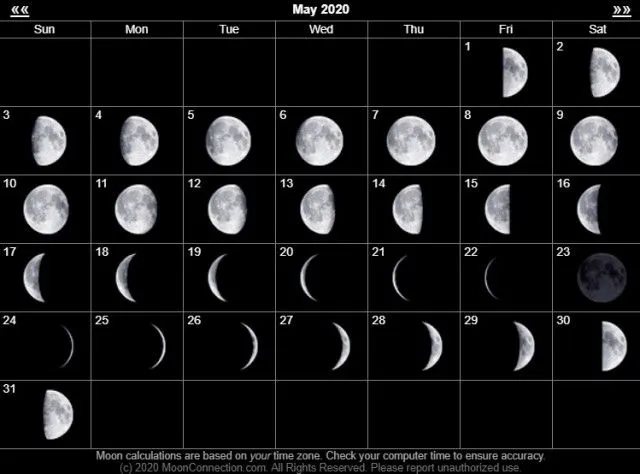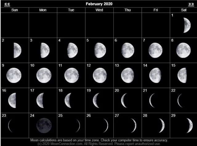 ปฏิทินดวงจันทร์ในแต่ละเดือน
