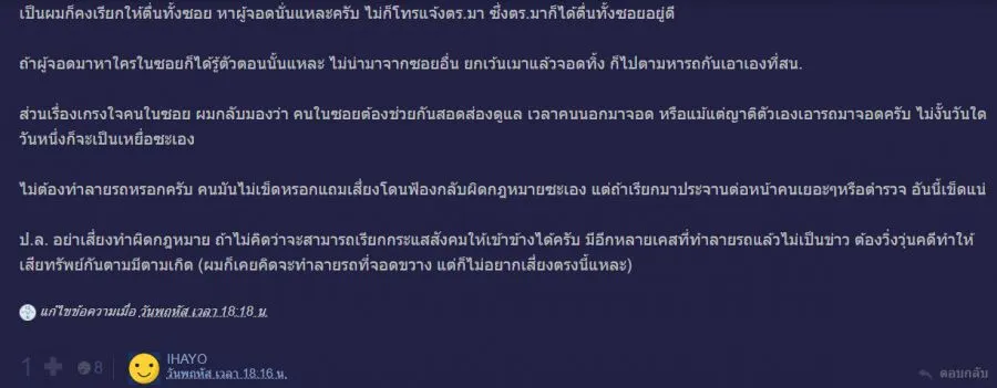 กรณีเช่นนี้ ถ้าเกิดเหตุการณ์อีก ควรจะทำอย่างไรและเพื่อนๆมีวิธีจัดการอย่างไรกันครับ ป้ายหน้าบ้านผมก็ติดบอกไว้ชัดเจน....เจอคนเห็นแก่ตัวแบบนี้กลุ้มจริง