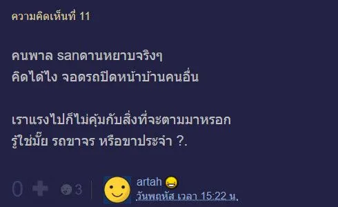 จากกรณีที่คุณ สมาชิกหมายเลข 1053873 สมาชิกเว็บไซต์พันทิปได้ออกมาตั้งกระทู้สอบถามถึงวิธีการจัดการกับข้างบ้านที่ชอบมาจอดรถขวางหน้าบ้าน จนทำให้เดือดร้อน โดยโพสต์รายละเอียดระบุว่า 'เพื่อนๆคนไหนมีวิธีจัดการกับคนที่จอดรถขวางหน้าบ้านโดยเจตนาบ้างครับ'