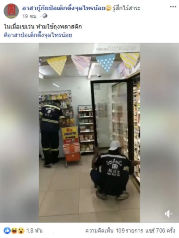 เช่นเดียวกับเรื่องราวดังต่อไปนี้ เมื่อล่าสุดทีมกู้ภัยป่อเต็กตึ้งจุดไทรน้อย ที่พากันเข้าไปช้อปปิ้งที่ร้านสะดวกซื้อชื่อดังแห่งหนึ่ง ก่อนที่จะพากันไปจ่ายเงินที่เคาท์เตอร์