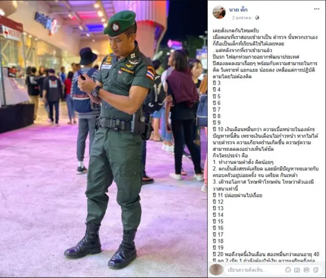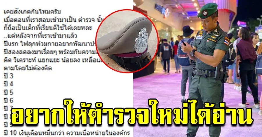 กลายเป็นอีกเรื่องราวที่ทำเอาชาวโซเชียลให้ความสนใจเป็นจำนวนมาก เมื่อได้มีตำรวจท่านหนึ่งได้โพสต์เตือนสติแก่ตำรวจรุ่นน้องที่กำลังจะก้าวเข้ามาเป็นตำรวจคนใหม่ โดยตำรวจท่านนี้ได้โพสต์ผ่านเฟซบุ๊คชื่อ นาย ตั๊ก ได้โพสต์ภาพและข้อความใจความว่า
