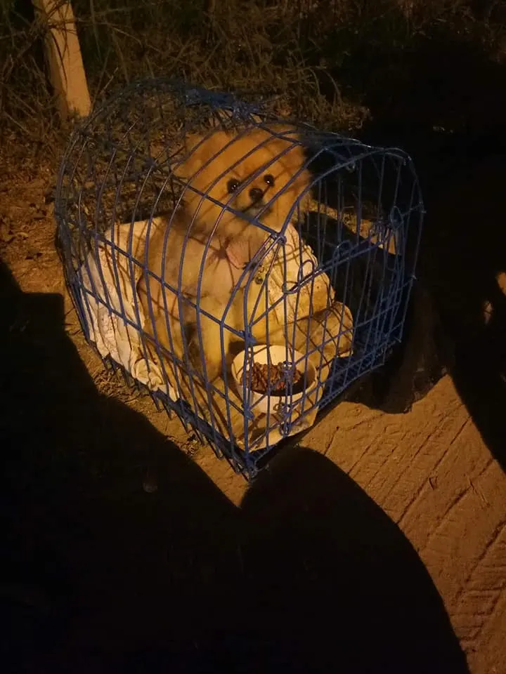 เธอเล่าว่าสังเกตเห็นอะไรบางอย่างในเงามืดริมถนน ตัดสินใจเดินเข้าไปดูใกล้ๆ นาทีนั้นใจสลายทันที เพราะสิ่งที่เจอคือกรงและข้างในมีสุนัขตัวน้อยนั่งมองเธอด้วยแววตาใสซื่อ