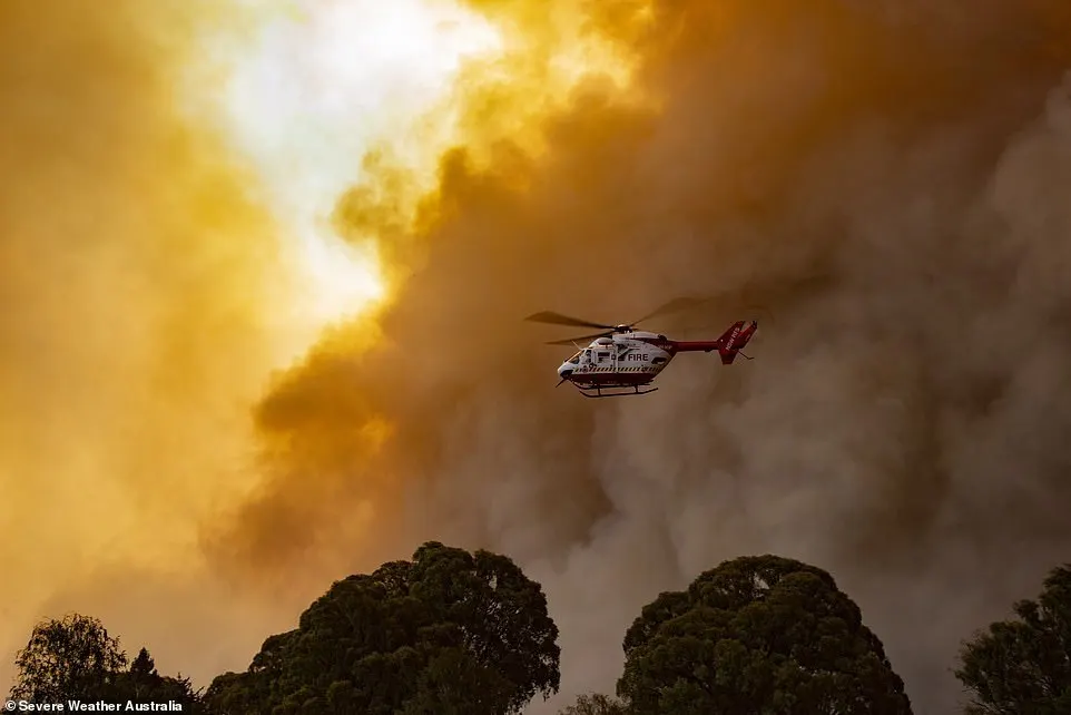 เฮลิคอปเตอร์ waterbombing ทำอย่างดีที่สุด เพื่อช่วยใน Batlow ในวันเสาร์ แต่ทัศนวิสัยต่ำทำให้ยากและมีความเสี่ยง
