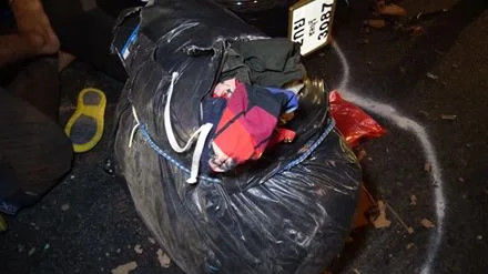 เจ้าหน้าที่รักษาความปลอดภัยธนาคาร ทั้งหญิงและชายใช้น้ำฉีดไล่คนไร้บ้าน