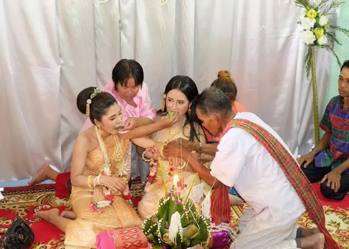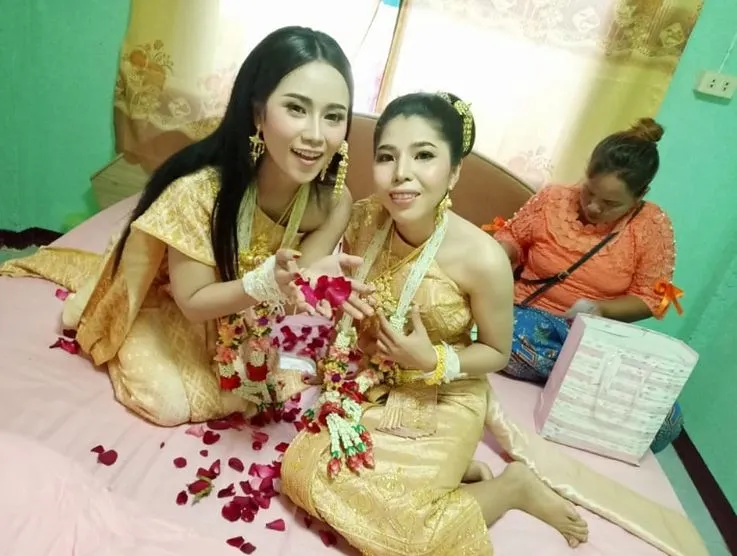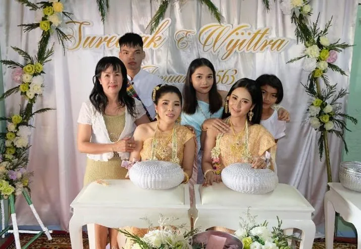 ผู้ใช้เฟซบุ๊กคุณ กุ้งนาง สุรีรักษ์ ได้ออกมาโพสต์ภาพงานแต่งงานของตัวเอง ที่จัดขึ้นอย่างอบอุ่น แต่ที่สร้างความฮือฮาคือเป็นการแต่งงานระหว่างผู้หญิงกับผู้หญิง พร้อมกับจัดงานขึ้นตามประเพณีไทยทุกอย่างท่ามกลางพยานรัก เป็นญาติพี่น้อง และเพื่อนๆของทั้งสองฝ่าย