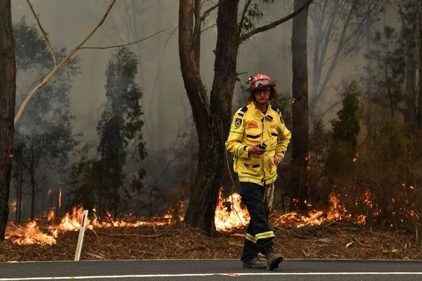 นักผจญเพลิงทำงานเพื่อป้องกันไฟป่าเล็ก ๆ ใกล้กับ Ulladulla