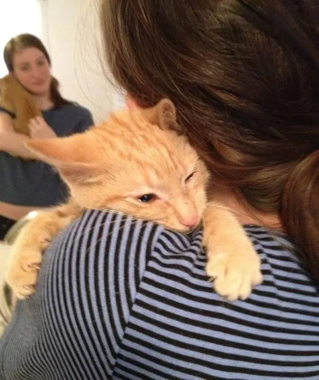 พวกเค้าทิ้งทุกอย่างที่ต้องทำในวันนั้นเพื่อที่พาลูกแมวไปหาสัตวแพทย์ เนื้อตัวของลูกแมวสีส้มเต็มไปด้วยเห็บและพวกมันก็ไต่ยั้วเยี้ยเต็มกรง เมื่อสัตว์แพทย์รับตัวมันไปรักษาเค้าบอกกับผู้ช่วยเหลือ ว่าลูกแมวดุร้ายเกินกว่าจะรับเลี้ยงและควรปล่อยมันไป