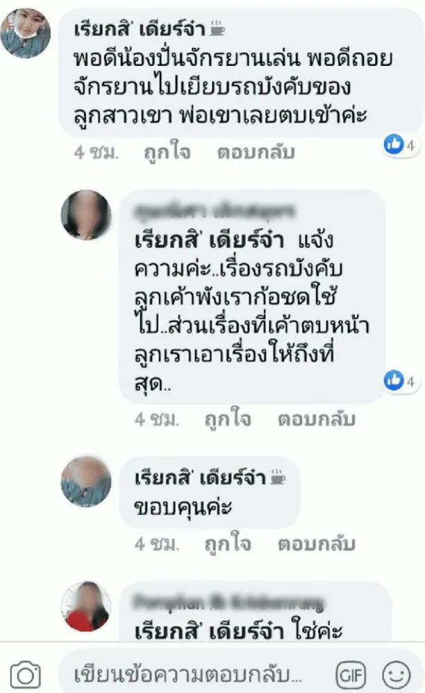 ต่อมา ได้มีผู้ใช้เฟซบุ๊กที่ใช้ชื่อว่า ภุมรินทร์ รอดทรัพย์ แสดงตนว่าเป็นภรรยาของผู้ชาย ที่เป็นผู้ตบหน้าเด็กชายในรูปมาแสดงความคิดเห็นว่า ถ้าไม่มีใครโทรก็จะตอบให้นะคะ คือว่าลูกสาวอยากได้รถบังคับ พ่อก็เลยซื้อให้เป็นของขวัญปีใหม่ให้ทั้งๆ ที่ลูกไม่เคยเรียกร้องขอของเล่นเลย เพิ่งขอเป็นชิ้นแรก พอซื้อมาลูกสาวก็เอามาเล่น แต่มีเด็กกลุ่มหนึ่งขี่จักรยานเพื่อที่จะไล่ทับรถบังคับที่ลูกสาวเล่นอยู่