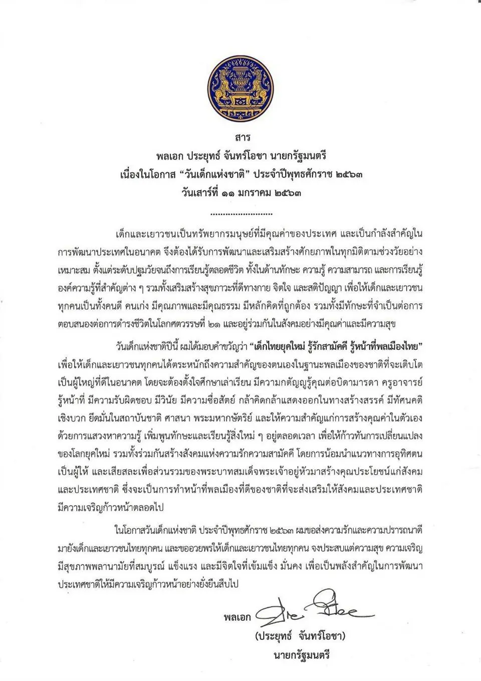 โลโก้ คำขวัญ สารนายกฯ สาร รมต.ศธ. เนื่องในโอกาส วันเด็กแห่งชาติ ประจำปี พ.ศ.2563 ในวันเสาร์ที่ 11 มกราคม 2563