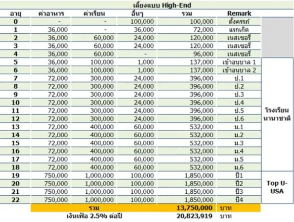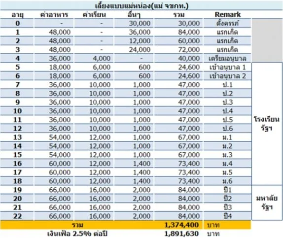 ผู้โพสต์ระบุข้อความว่า ค่าใช้จ่ายทุกอย่างผมใช้ตัวเลขคร่าวๆนะครับ โดยเฉพาะเลี้ยงลูกแบบ High End นั้นต้องยอมรับว่าอาจจะคาดเคลื่อนได้ ถ้าท่านใดมีประสบการณ์ตรงก็มาแชร์กันได้นะครับ แต่ถ้าเลี้ยงแบบแม่หน่องนั้น อันนี้ต้องบอกว่าเป๊ะมาก เพราะผมสอบถามกับแม่หน่องโดยตรง