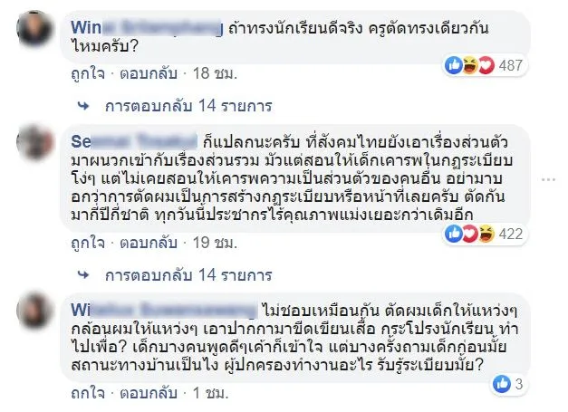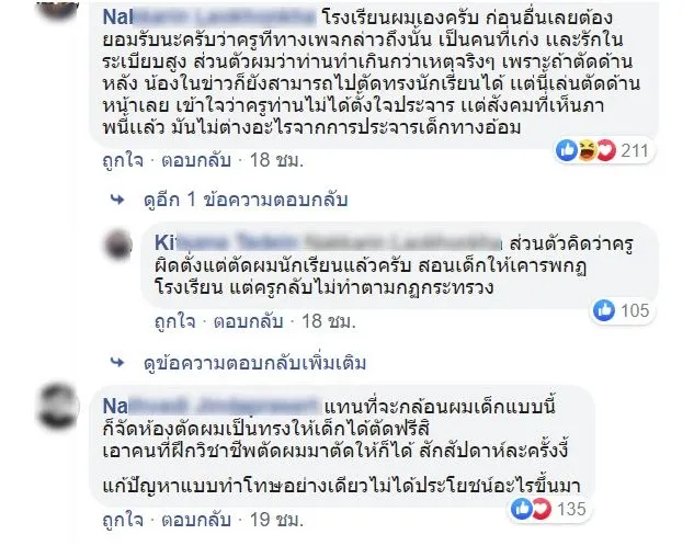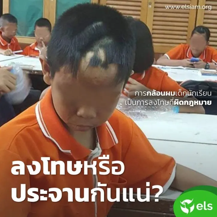 ทางกลุ่มฯ ได้รับการร้องเรียนว่า มีเด็ก ม.1 (ในภาพ) จากโรงเรียนแห่งหนึ่ง ในอำเภอโคกโพธิไชย จังหวัดขอนแก่น ถูกคุณครูฝ่ายกิจการนักเรียนไถผมด้านหน้าจนแหว่งเป็นหย่อม ๆ โดยตัวเด็กเองก็มีปมเรื่องใบหน้าที่เป็นแผลเป็นจากการถูกไฟไหม้เป็นทุนเดิมอยู่แล้ว มีคุณครูหลายท่านเห็นใจ และคิดว่าการลงโทษเช่นนี้จะยิ่งตอกย้ำปมด้อยด้านรูปลักษณ์ให้กับเด็ก แต่ก็ไม่สามารถโต้แย้งได้ เพราะไม่อยากมีเรื่องกับคุณครูฝ่ายกิจการนักเรียน