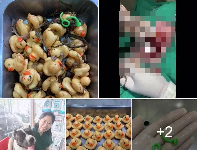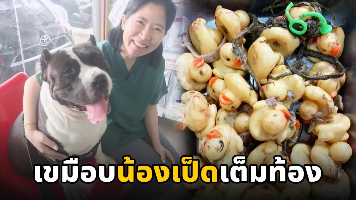 หมอ เอกซเรย์พบเป็ดในกระเพาะ หมาพิทบูล ผ่าท้องเจอเป็ดยาง32ตัว