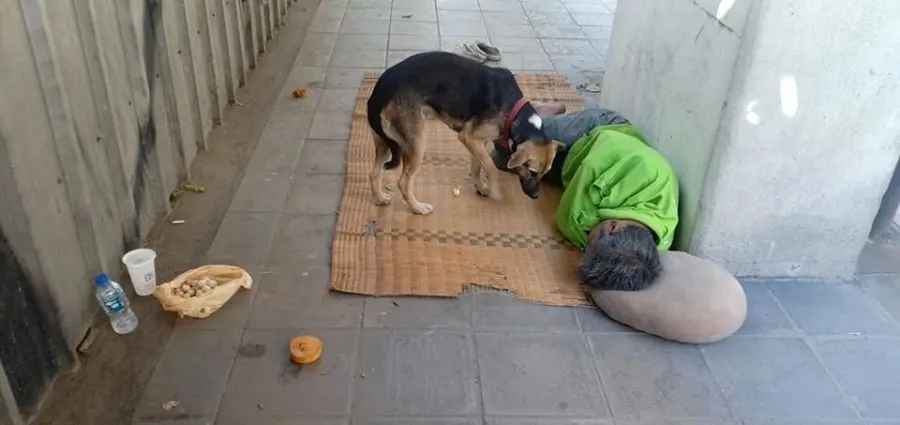 คุณลุงไร้บ้านกับสุนัขคู่ใจ เอาตัวผิงกันไว้เพื่อคลายหนาวถึงไม่มีแต่ไม่มีวันทิ้งกัน
