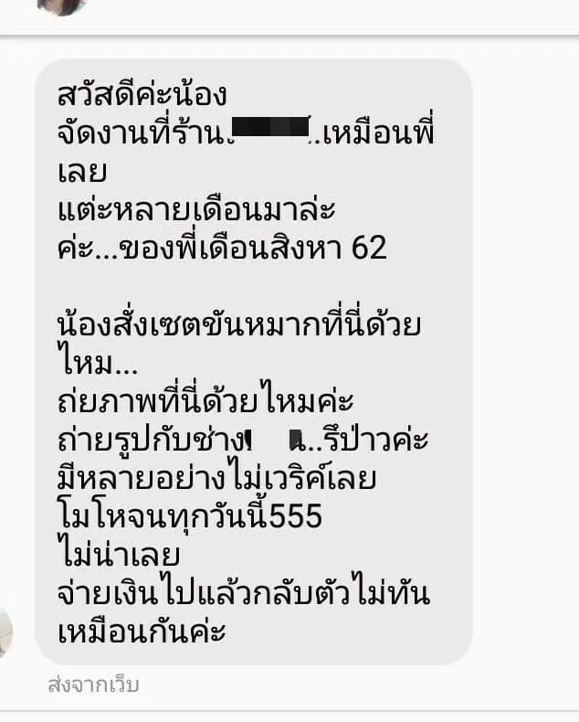 ออแกไนซ์งานแต่งขโมยผลงานมาหลอกลูกค้า ถึงเวลาจ้างจริงผลงานสุดห่วย